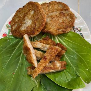 - Thoa dầu lên tay sau đó nặn chả cá thành viên nhỏ hoặc ấn dẹp xuống tùy theo sở thích của mỗi người thực hiện.